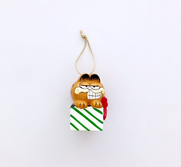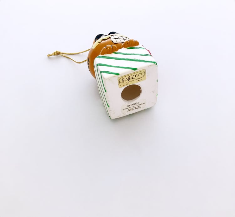 GARFIELD Christmas Ornament / 80s ENESCO TAIWAN Vintage Ceramic Figurine