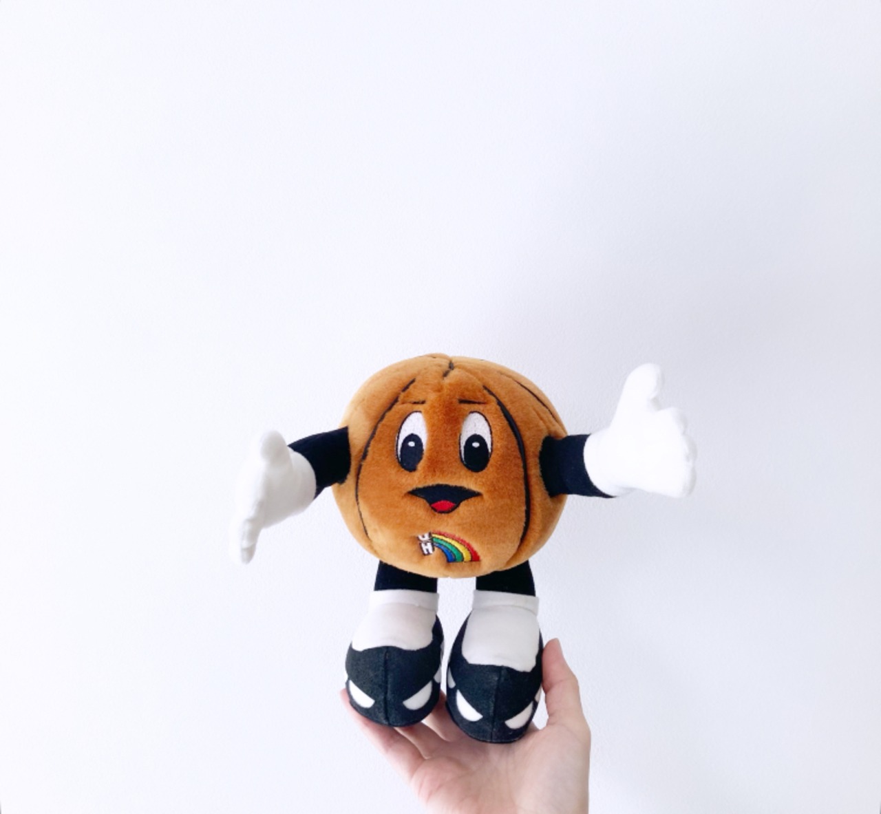 お腹のロゴと虹の刺繍がかわいいですよね。