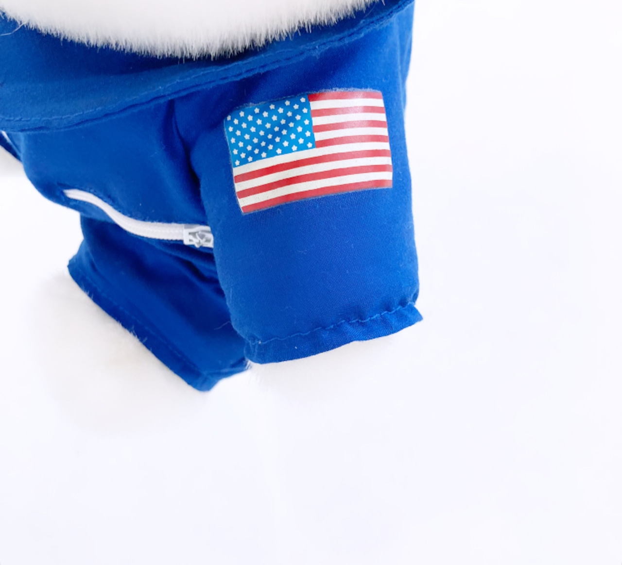 胸にはNASAのロゴ、腕には星条旗と
